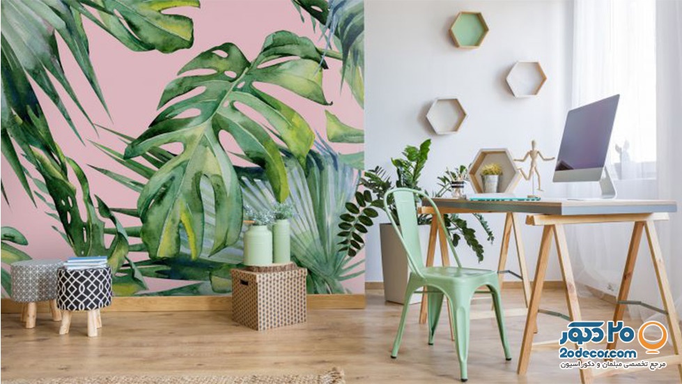رنگ سبز را نیز میتوان با صورتیهای ملایم مورداستفاده قرار داد این ترکیب رنگ بیشتر مناسب کاغذ دیواریها است. مثلاً رنگ زمینه آن را صورتی چرک انتخاب نمایید و طرح برگ و گلها را سبز انتخاب کنید این ترکیب باعث ایجاد آرامش در افراد میشود.