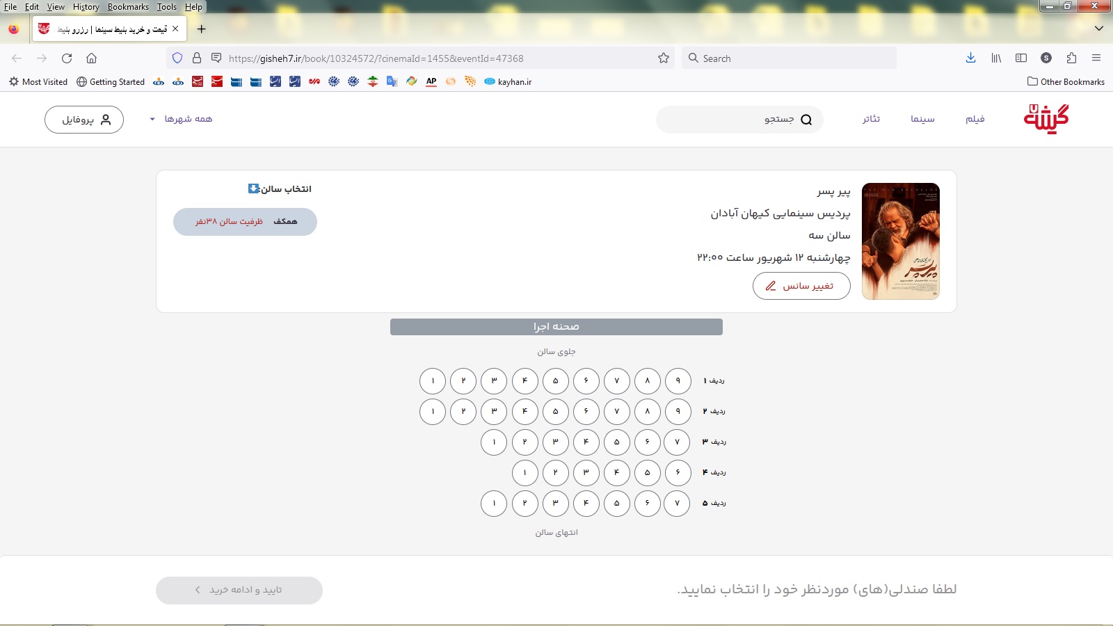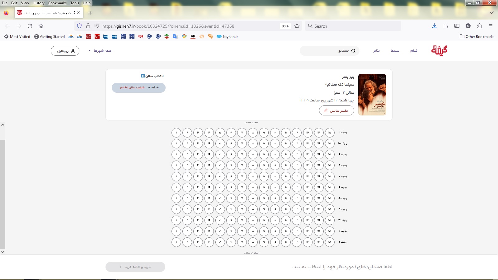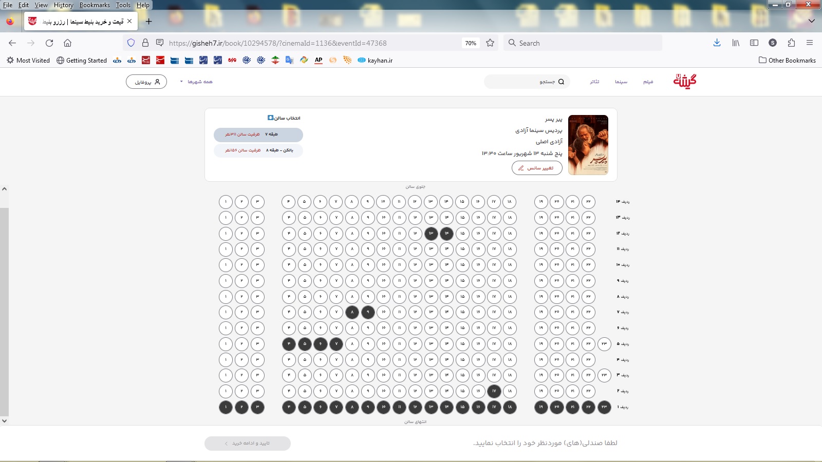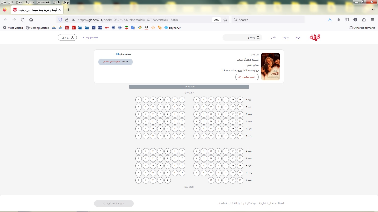 هر یک از دوستان می تواند به یکی از سایت های فروش آنلاین بلیط های سینما مثل "سینما تیکت" یا "گیشه 7" مراجعه نموده و خودش پلان های سالن های سینماها را در سراسر کشور بررسی نماید.
