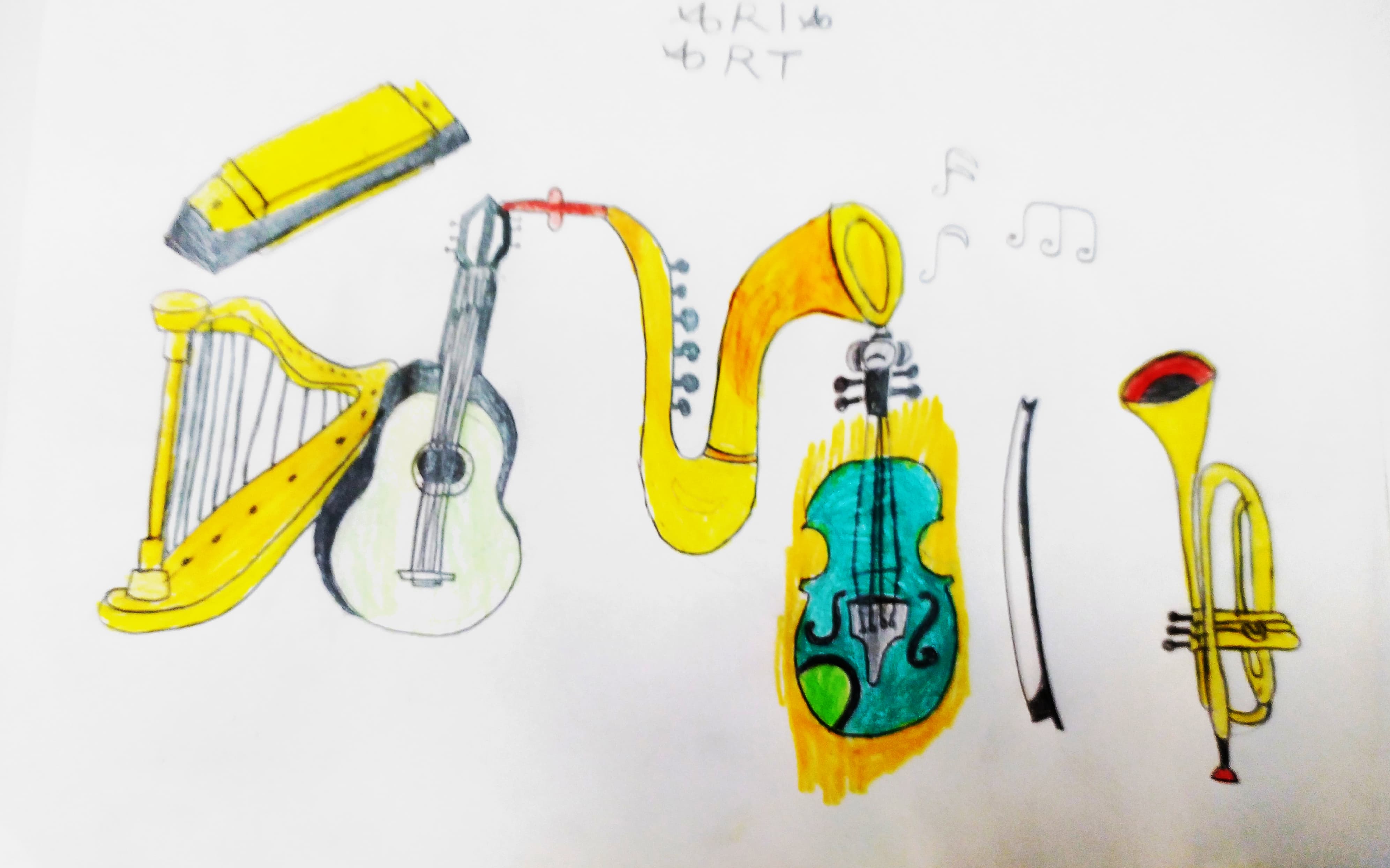 در نقاشیهایی که ابزار موسیقی کشیده میشوند (مثل گیتار، ویولن، ساکسیفون، شیپور و …)، سبک کارتونی اسکچ باعث میشود نقاشی:
