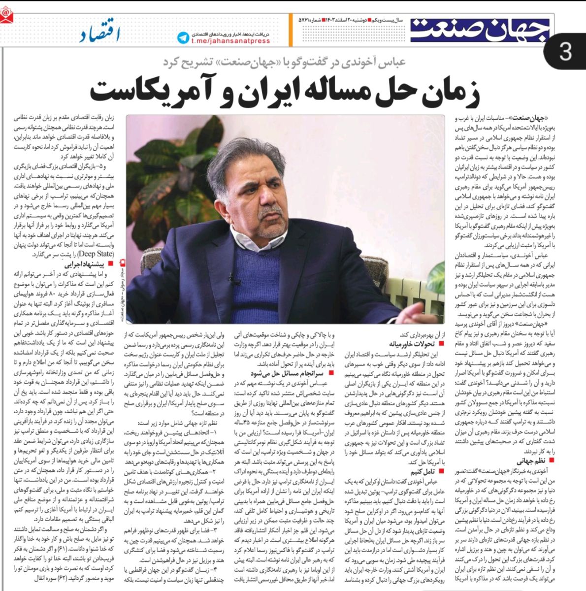 «جهانصنعت»- مناسبات ایران با غرب و بهویژه با ایالاتمتحده آمریکا در همه سالهای پس از استقرار نظام جمهوری اسلامی در مسیر تضاد بوده و دو نظام سیاسی هرگز دنبال سخنگفتن باهم نبودهاند. این وضعیت با توجه به نسبت قدرت دو کشور در سیاست و در اقتصاد بیشتر به زیان ایرانیان بوده و هست. حالا و در شرایطی که دونالدترامپ، رییسجمهور آمریکا میگوید برای مقام رهبری ایران نامه نوشته و میخواهد با جمهوری اسلامی گفتوگو کند، فضای تازهای برای تحلیل در این باره پیدا شده است. در روزهای تازهسپریشده بهویژه پیش از اینکه مقام رهبری گفتوگو با آمریکا را غیرهوشمندانه بداند برخی سیاستورزان گفتوگو با آمریکا را مثبت ارزیابی میکردند. عباس آخوندی، سیاستمدار و اقتصاددان ایرانی که در همه سالهای پس از استقرار نظام جمهوری اسلامی در مقام یک تحلیلگر ارشد و نیز مدیر باسابقه اجرایی در سپهر سیاست ایران بوده و هست از انگشتشمار مدیرانی است که با احساس دلسوزی برای این سرزمین و نیز برای عبور کشور از بحران با شجاعت سخن میگوید و مینویسد.