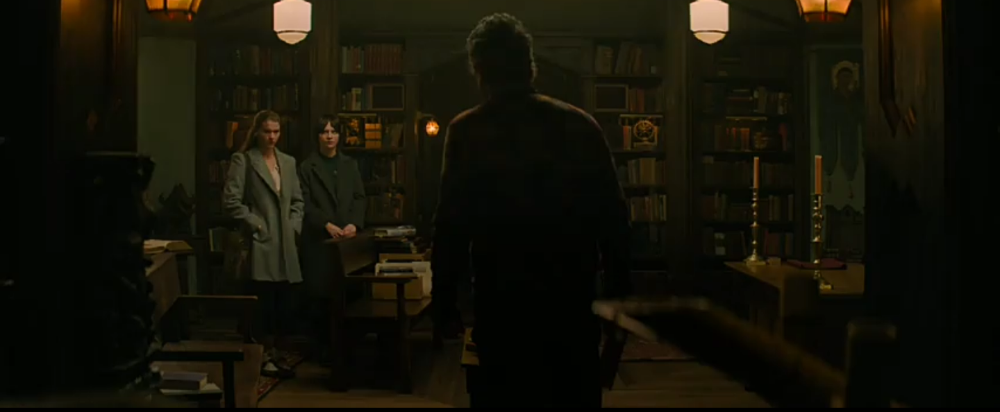 خیلی آرام و درِ گوشی میگویم: «قرار بوده است که رید، از یک طرف روشنگری کند و در عین حال، لباس یک پاپ بدجنس را بپوشد؛ باز هم بدین منظور که به این دو دختر، کنترل مذهبی را نشان دهد. اما بخاطر اینکه فیلم از تعلیق نیافتد و به ژانر دلهرهآورش هم توجهی داشته باشد، کارگردان مجبور شده است تا او را به یک آناتاگونیست واقعی تبدیل کند. و این باعث شده که با چهرهای که در ابتدا از او ساخته است، متضاد شود.»