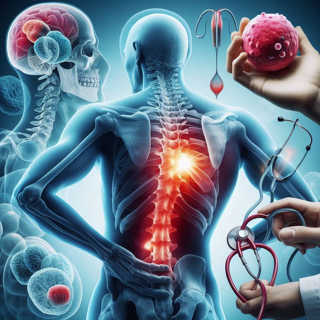 تومورهای نخاعی میتواند در استخوان ستون فقرات یا در غشاهای محافظ اطراف نخاع رشد کند. ستون فقرات یک محل رایج برای متاستاز استخوانی است، یعنی جایی که سرطان از یک مکان شروع شده و به سایر نقاط گسترش مییابد. این نوع از سرطان میتواند باعث ایجاد کمردرد شود.