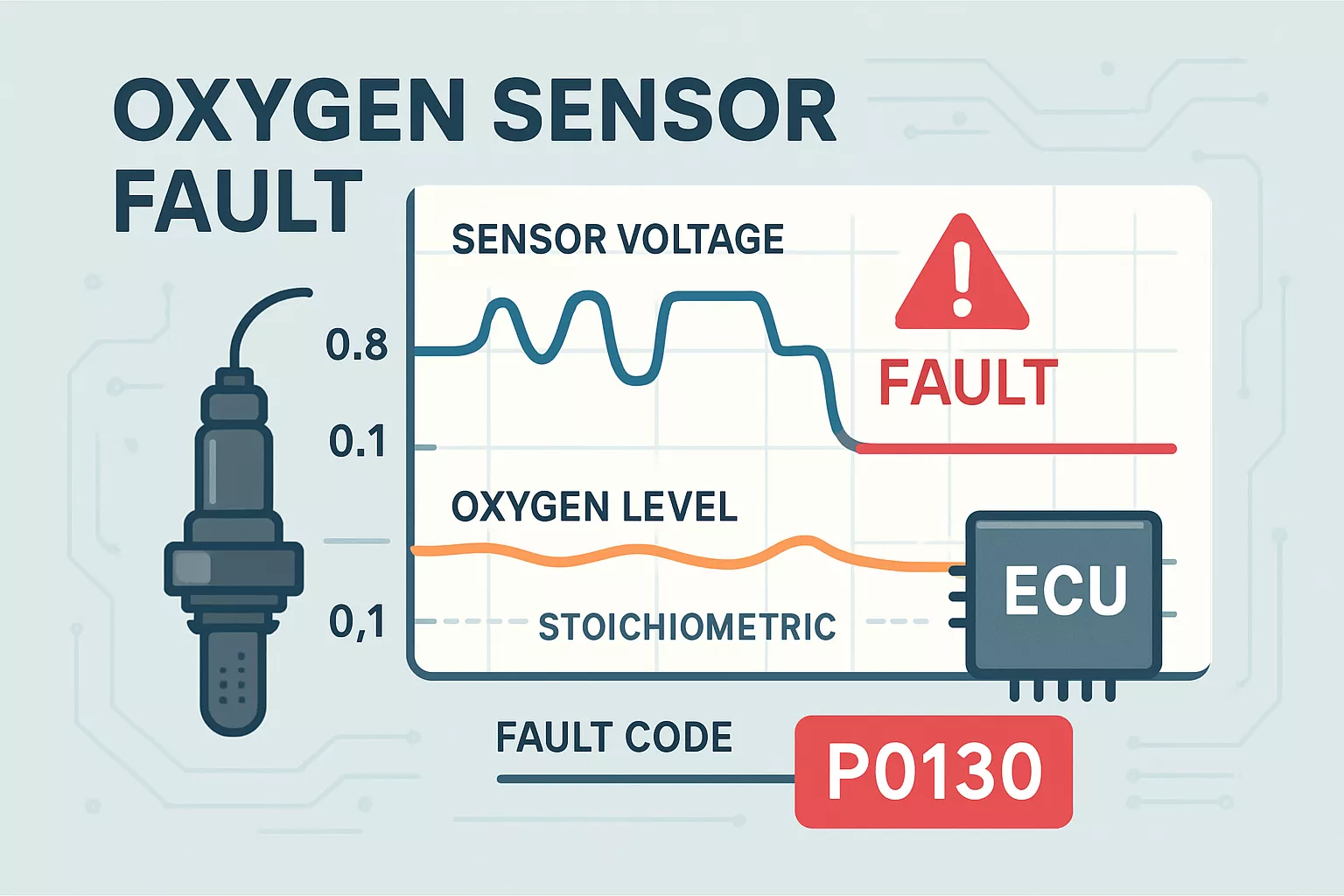 روشن شدن چراغ چک موتور همراه با کد خطای مربوط به سنسور اکسیژن