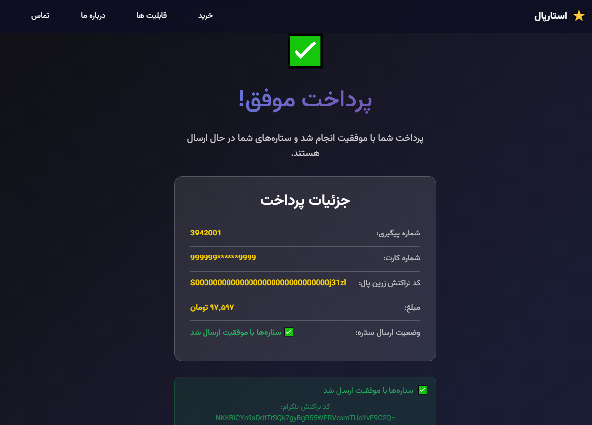 و نهایتا صفحه تایید براتون میاد و در عرض چند ثانیه ستاره ها براتون ارسال میشه: