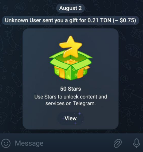 شخص دریافت کننده ستاره هاش رو به این شکل از سرویس رسمی تلگرام دریافت میکنه: