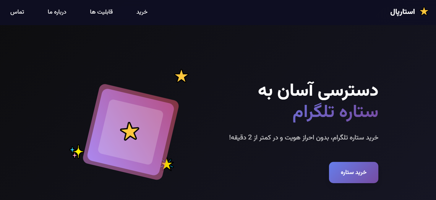 اخیرا وبسایت starpal.ir رو راه انداختم که توش میتونید بدون احراز هویت و در کمتر از 2 دقیقه ستاره تلگرام بخرید!