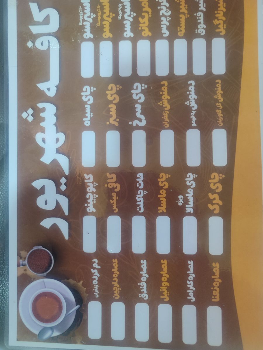 در کافه شهریور، منوی ما شامل انواع نوشیدنیهای گرم و سرد، دسرهای خوشمزه و خوراکیهای لذیذ است. از قهوههای تازه دم کرده و چایهای معطر گرفته تا کیکها و دسرهای خانگی، هر چیزی که بخواهید در اینجا پیدا خواهید کرد.