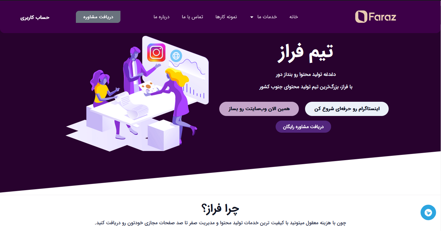 📌 چی کار میکنن؟ طراحی سایت، تولید محتوا، تبلیغات دیجیتال