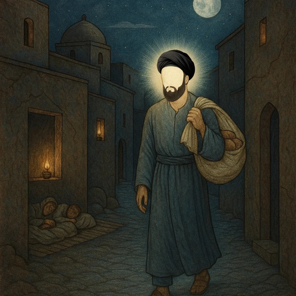 شبش نانِ جو و اشک است، نهانکار و فروتن