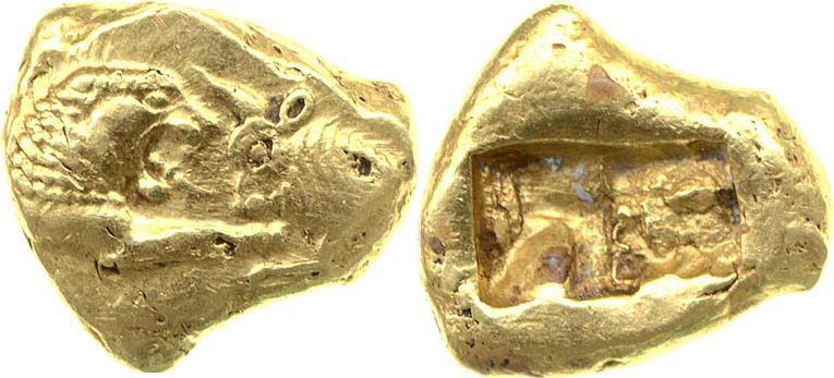 پیش از هخامنشیان، نقش شیر و گاو بر سکههای طلای لیدی در سدهی ششم پیش از میلاد دیده میشود، بهویژه در دوران کرزوس (Croesus).