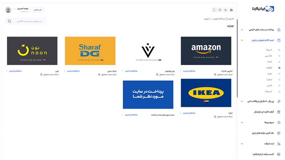 انتخاب فروشگاه و محصول موردنظر: پس از ورود به پنل از قسمت سمت راست صفحه روی «خرید کالا و تحویل در ایران» کلیک کرده و کشور موردنظرتان را انتخاب کنید. حالا وارد فروشگاه موردنظر (مثلا ترندیول، آمازون یا نون) شوید و لینک محصولی که قصد خریدش را دارید، کپی کنید.