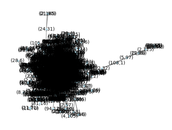 میخواستم با روشی مشابه روش کلاینبرگ با استفاده از خوشه بندی بردار ها فاصله هر دو آیه را بیابم و سپس با احتمالی مرتبط با فاصله آیاتی که خارج از GCC هستند را به گونهای به گراف متصل کنم ولی باز هم نتوانستم.
