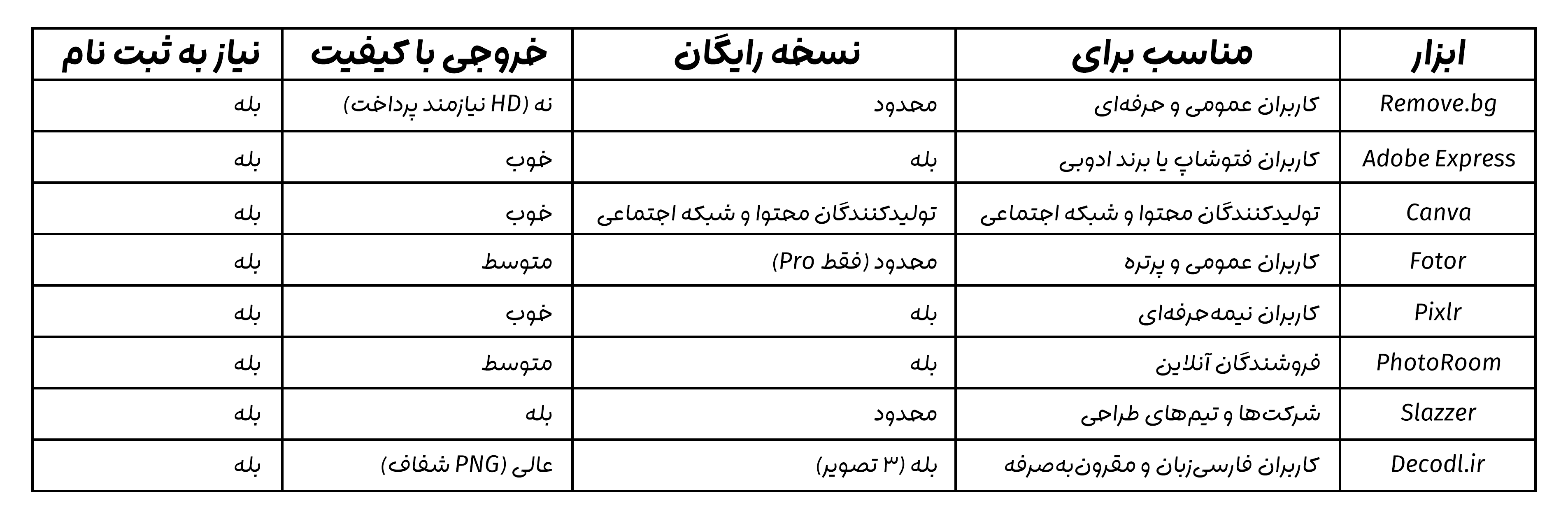 برخی فقط در محیط خاصی (مثلاً Canva یا Adobe Express) قابل استفادهاند.