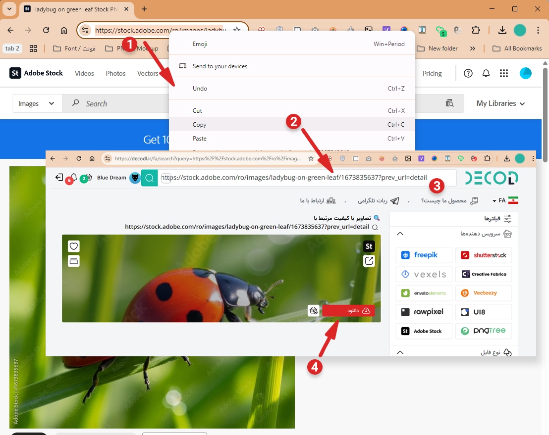 حالا میرسیم به مطمئنترین و راحتترین روش برای دانلود فایلهای پرمیوم از Adobe Stock: استفاده از دکو دی ال.