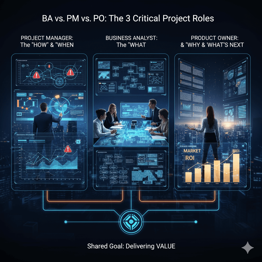 این مقاله برای تعاریف سطحی نوشته نشده است. هدف این متن، کالبدشکافی عمیق این سه نقش از منظر «فلسفه وجودی» آنهاست. موفقیت، در گرو درک این است که این سه، نقشهایی مجزا با سه «کانون توجه» کاملاً متفاوت هستند: اجرا (PM)، راهحل (BA) و ارزش (PO).