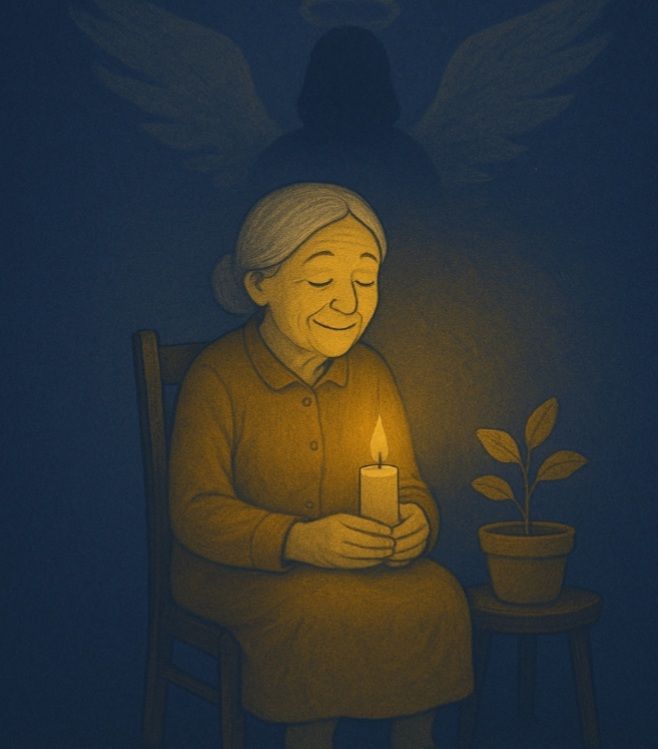 پیرزنی تنها نشسته بود و با لبخند، برای گلدان خشکیدهاش آواز میخواند. فرشته آرام کنار او نشست. هیچ نگفت، فقط گوش داد… و آن دل، گرم شد.