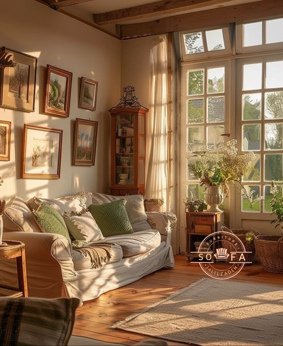 از مبلمان با رنگ بسیار نزدیک به فرش ولی به صورت پر رنگ تر استفاده کنید. برای نمونه میتوانید مبلمان به رنگ کرم را برای هماهنگی با فرش روشن انتخاب نمایید. گزینه دیگر این است که از مبلمان به رنگ شاد و البته با طیفهای رنگی روشن استفاده کنید.