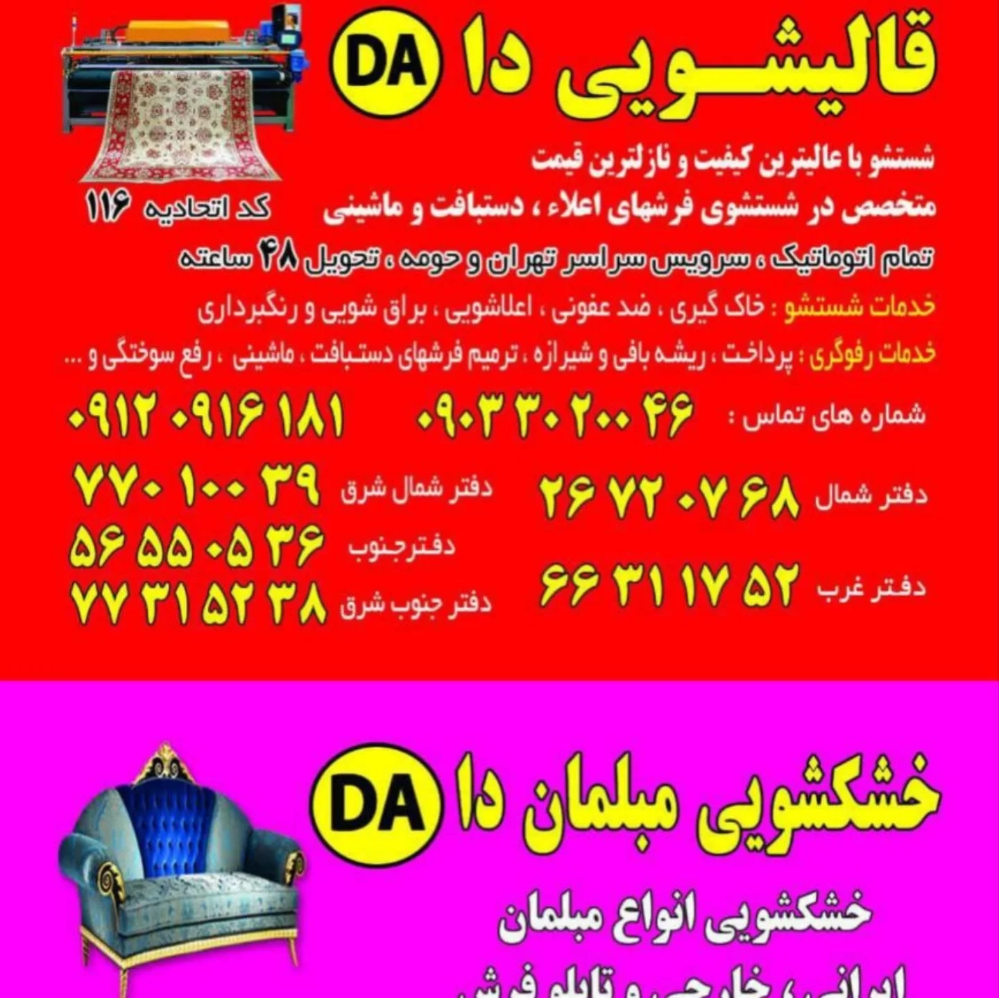 قالیشویی و مبلشویی دا دفتر غرب تهران و حومه: