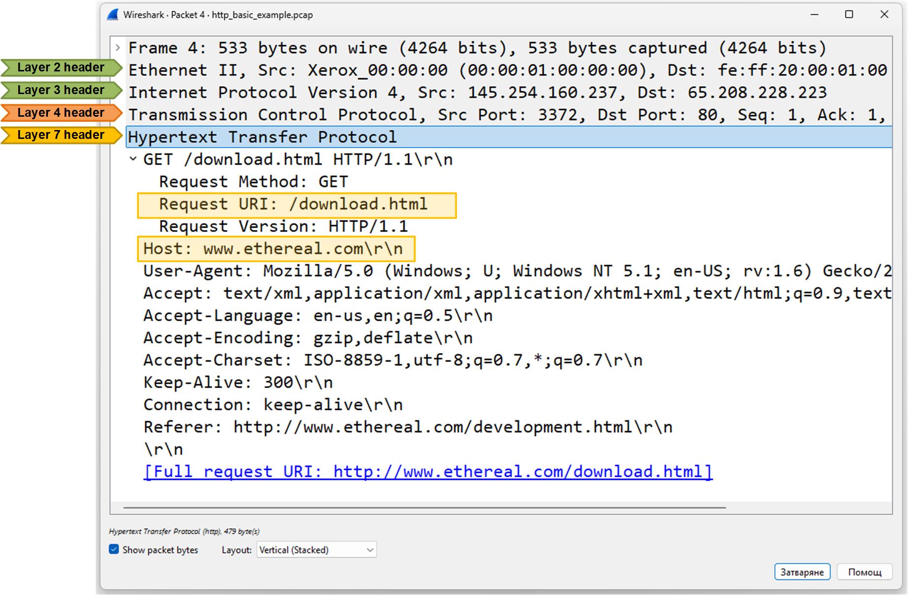 میزبان (Host): www.ethereal.com — مشخص میکند درخواست برای کدام وبسایت است.