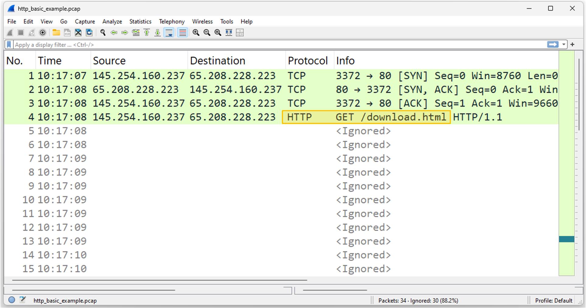 در پایان درس، میتوانید فایل ضبط ترافیک (pcap) را دانلود کرده و آن را در Wireshark باز کنید تا بتوانید نگاه عمیقتری به هدرها داشته باشید.