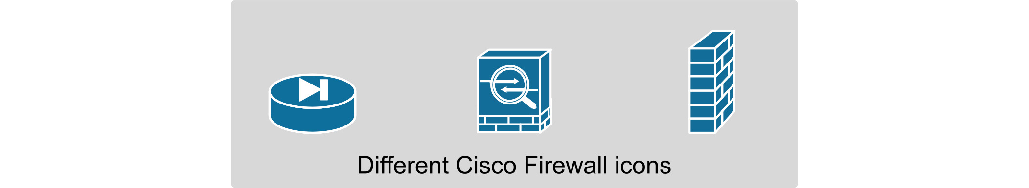 در این درس، فایروال شبکه را بررسی میکنیم — یک دستگاه امنیتی که تا لایه 7 مدل OSI کار میکند و از مرز شبکه محافظت میکند. نمودار زیر متداولترین آیکونهای مورد استفاده برای نمایش یک فایروال Cisco در توپولوژی شبکه را نشان میدهد.
