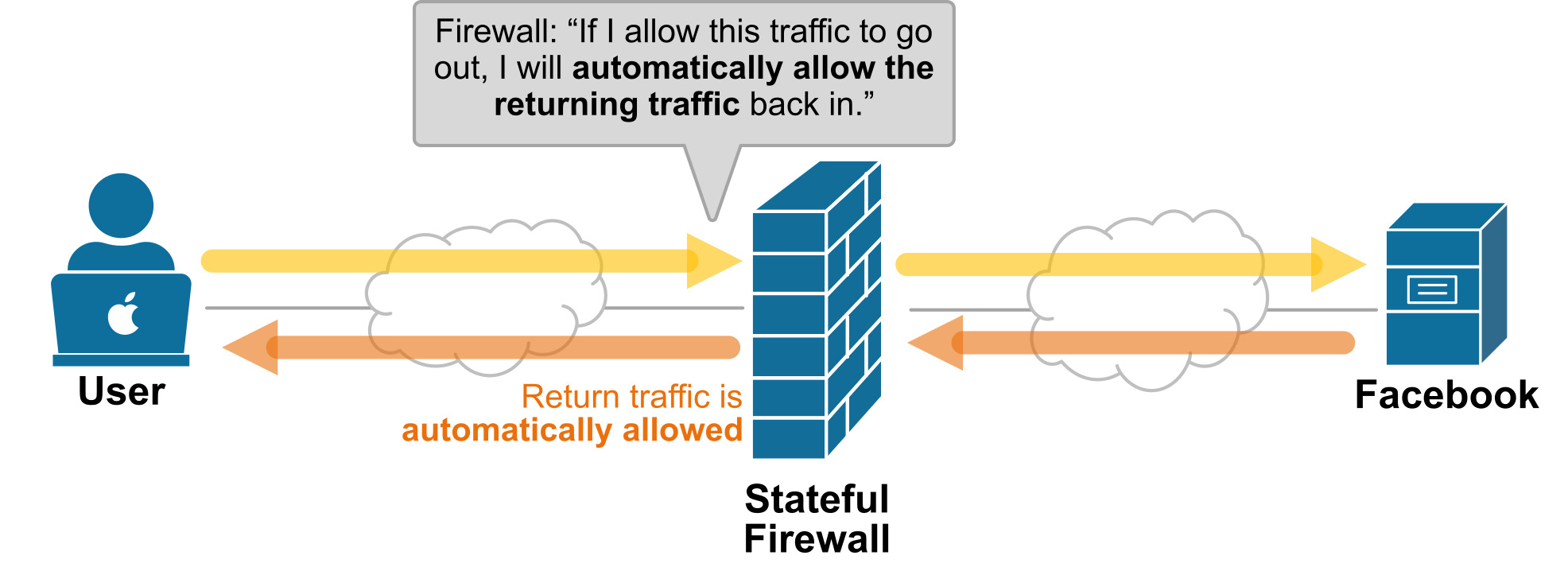 بازرسی حالتمند به فایروال اجازه میدهد تا اتصالات فعال را ردیابی کند و به طور خودکار ترافیک بازگشتی را مجاز کند در حالی که بستههای ناخواسته را مسدود میکند.