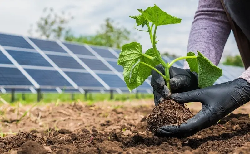 · خلق الگوهای نوین کاربری زمین (آگریولتائیک): سیستمهای تلفیقی «کشاورزی-خورشیدی» امکان تولید همزمان غذا و انرژی را فراهم کرده و منجر به بهبود کیفیت خاک، حفظ رطوبت، کاهش مصرف آب در کشاورزی (تا ۳۰%) و افزایش بهرهوری کلی زمین میشوند.