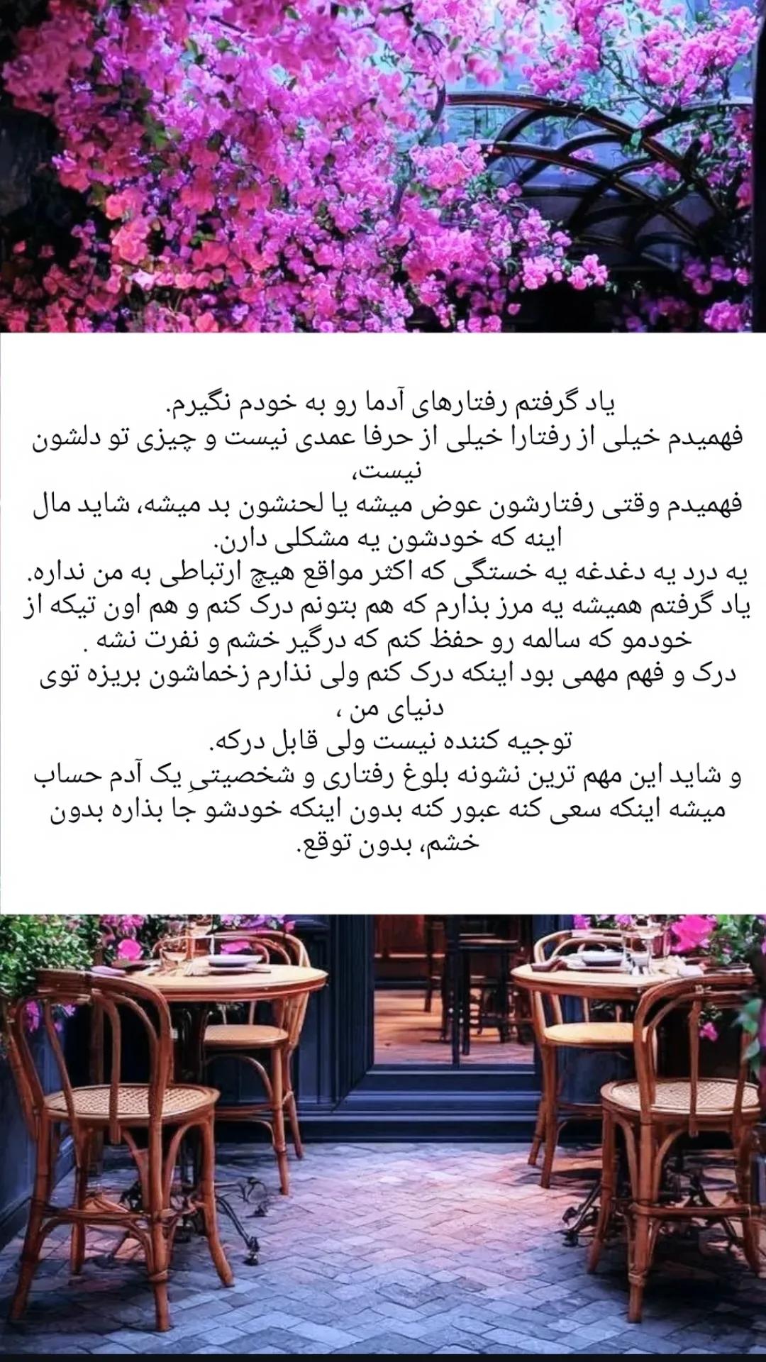 و شاید این مهم ترین نشونه بلوغ رفتاری و شخصیتیِ یک آدم حساب میشه اینکه سعی کنه عبور کنه بدون اینکه خودشو جا بذاره بدون خشم، بدون توقع.