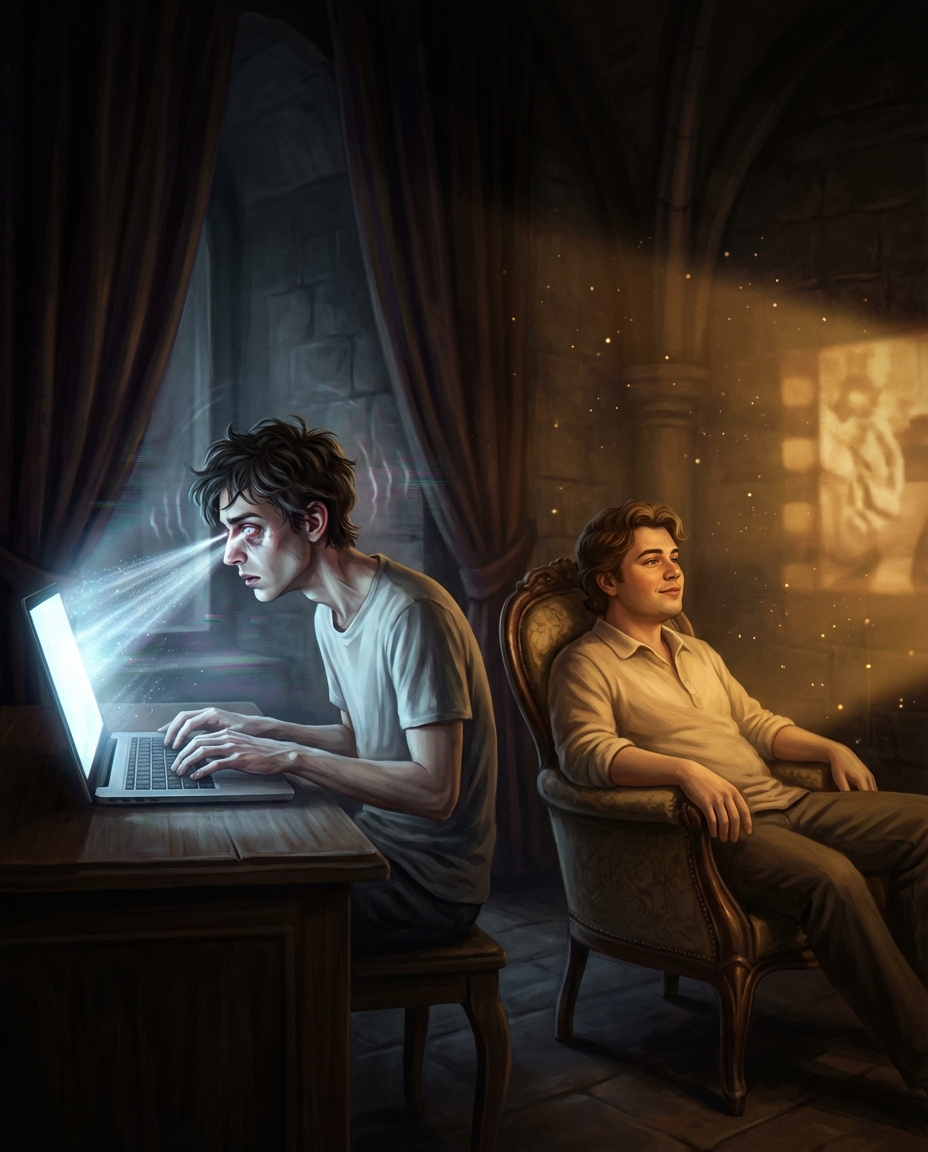 داره با تایپ کردن، به تجربهای که نداشته معنا تزریق میکنه.