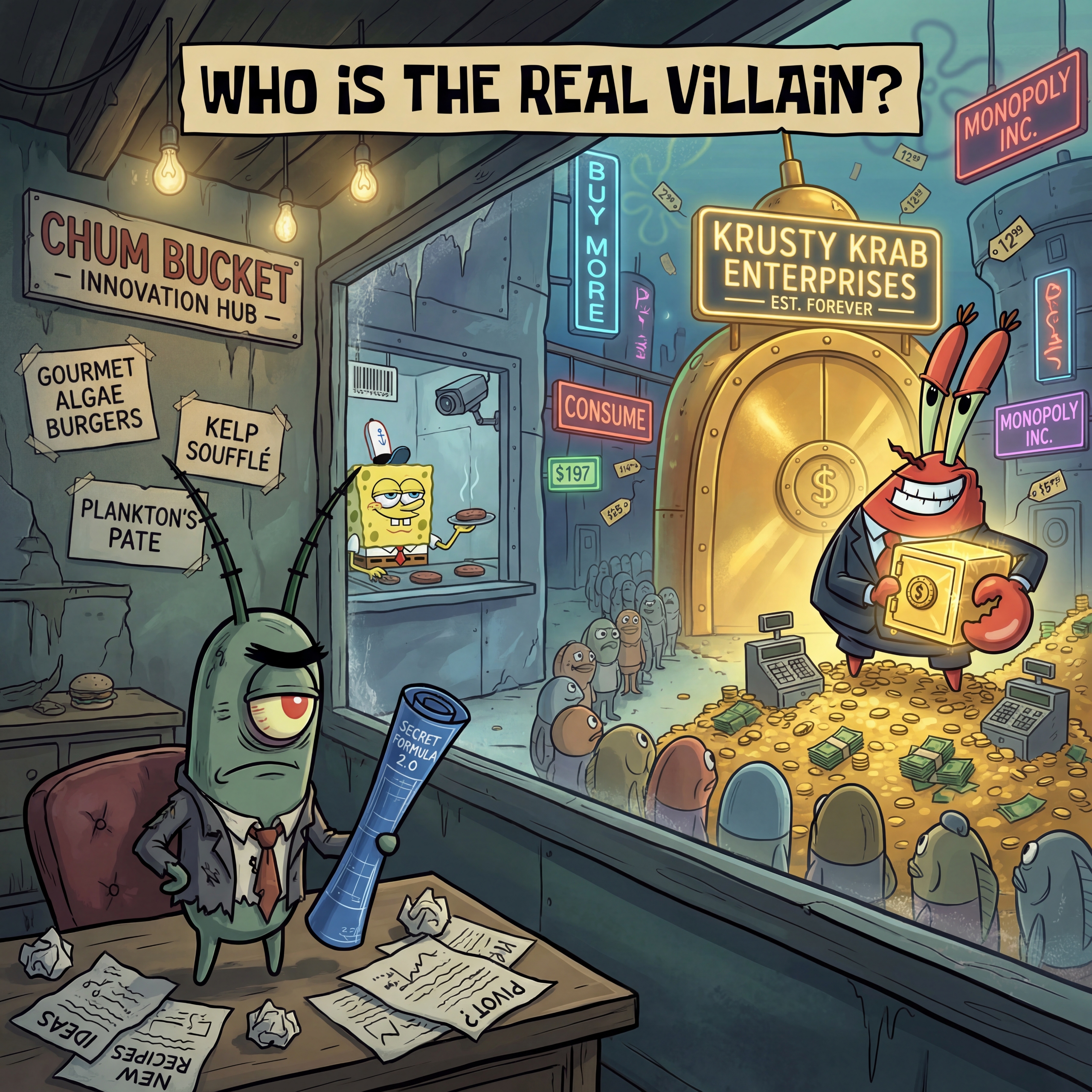 یه موجود ریزهمیزهی تکسلولی با صدای نازک که کل عمرش دنبال دزدیدن فرمول همبرگر خرچنگیه.