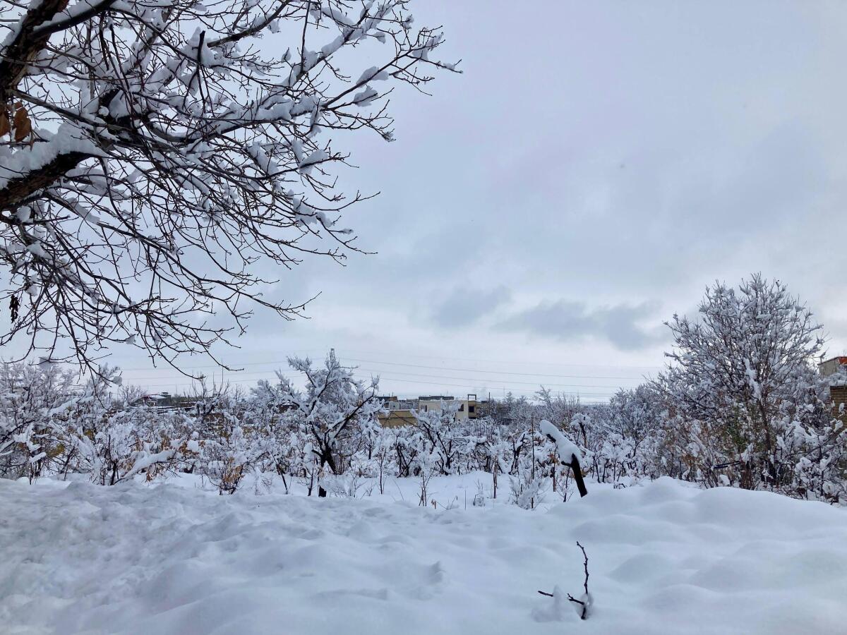 برف از روی شاخههای درختهای اطراف میریخت و یک فضای سورئال ساخته بود.
