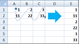 برای تبدیل محدودهی دادهها به یک ستون دو حالت وجود دارد: