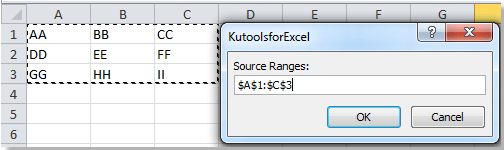 مطابق راهنمای درون فایل، روی دکمه اجرای ماکروی ۱ کلیک کنید تا پنجره زیر ظاهر شود. ناحیه سلولهای مدنظرتان (مثلا A1:C3) را انتخاب کنید.