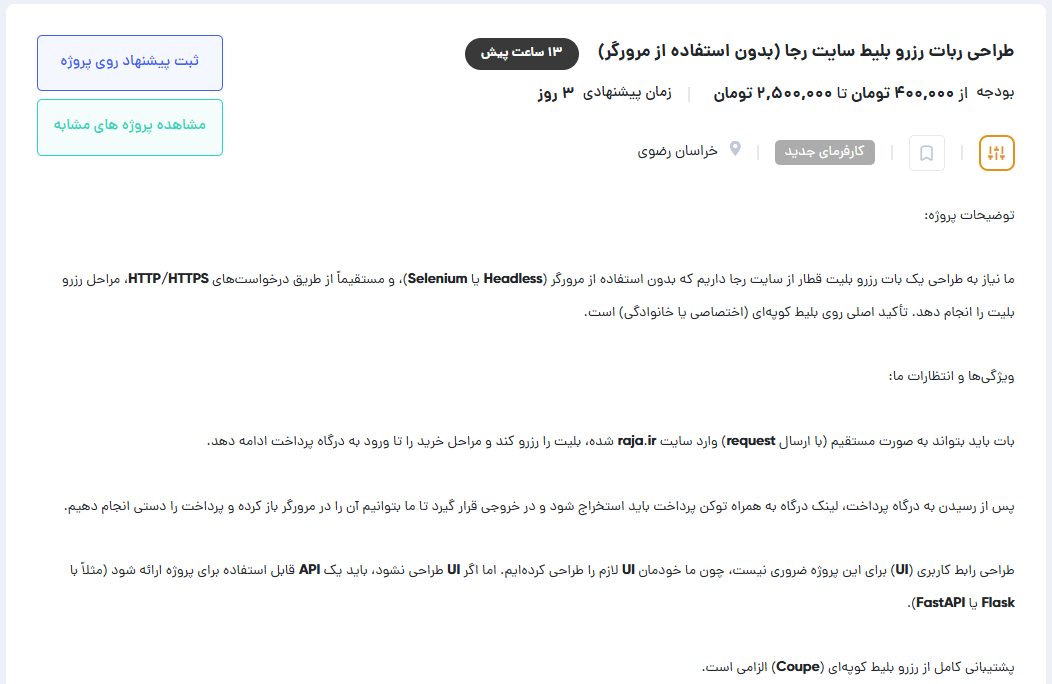 چندین بار پیش آمده که پروژهای مناسب در سایت میبینم، با دقت کامل و ادبیاتی حرفهای برای کارفرما پیام میفرستم، اما هیچ پاسخی دریافت نمیکنم. بیپاسخماندن پیامها شاید طبیعی به نظر برسد، اما وقتی این اتفاق بهدفعات زیاد و در پروژههایی با محتوای تکراری رخ میدهد، جای سوال دارد.