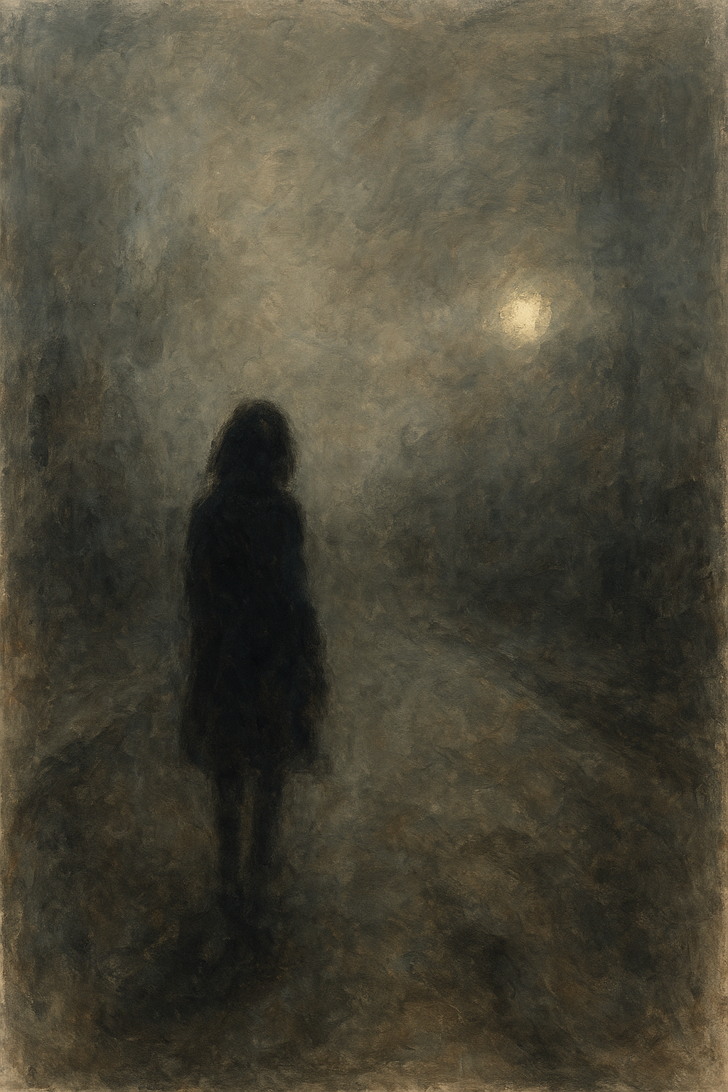 که غم گرفته به این جادّهی مهآلود مینگرد.