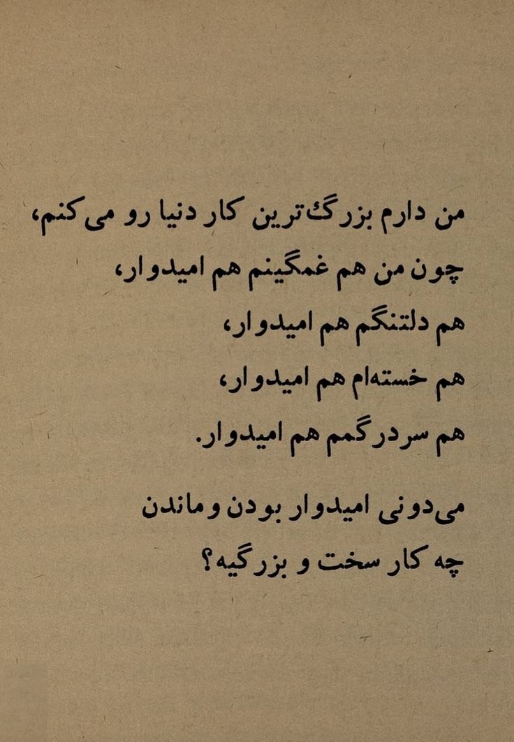 هنوز باور دارم که میآیی، آرامش و ذهنی آرام را به من هدیه میدهی، خواستار این هستم که زودتر بیایی و دل آشوبم را آرام سازی...