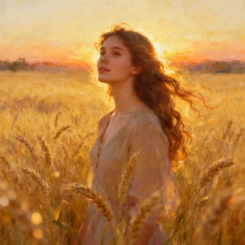نتیجه (یک پرامپت تولید شده توسط ChatGPT): "یک دختر جوان با موهای بلند و موجدار که در مزرعه وسیعی از گندمهای طلایی ایستاده است. نور آفتاب غروب، به آرامی از پشت سر او میتابد و هالهای در اطراف موهایش ایجاد کرده است. نگاهی رویایی و مملو از آرامش دارد. باد ملایمی شاخههای گندم را به حرکت درآورده است. زاویه دید کمی پایینتر از سطح چشم، با پسزمینهای تار و جلوهای بوکه. سبک هنری: فوتورئالیسم، با الهام از نقاشیهای امپرسیونیستی."