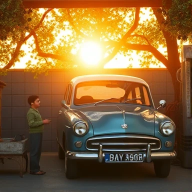 خورشید صبح از لای شاخههای توت، لکهلکه روی کاپوت آبیرنگ پیکان قدیمیمان افتاده بود. بوی بنزین با بوی چای تازهی مادرم قاطی شده بود و من، پسربچهای دهساله، کنار گاراژ ایستاده بودم.