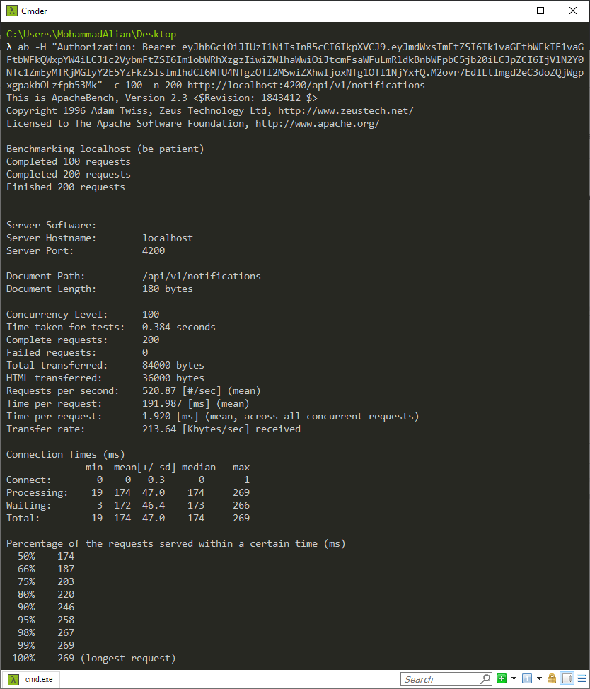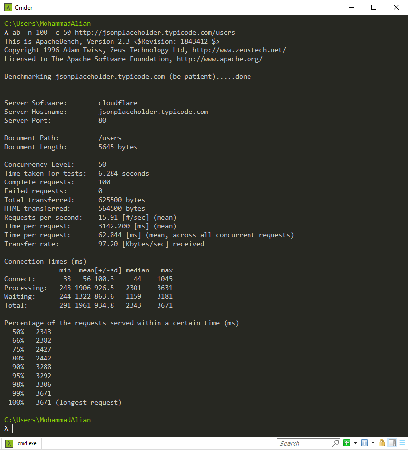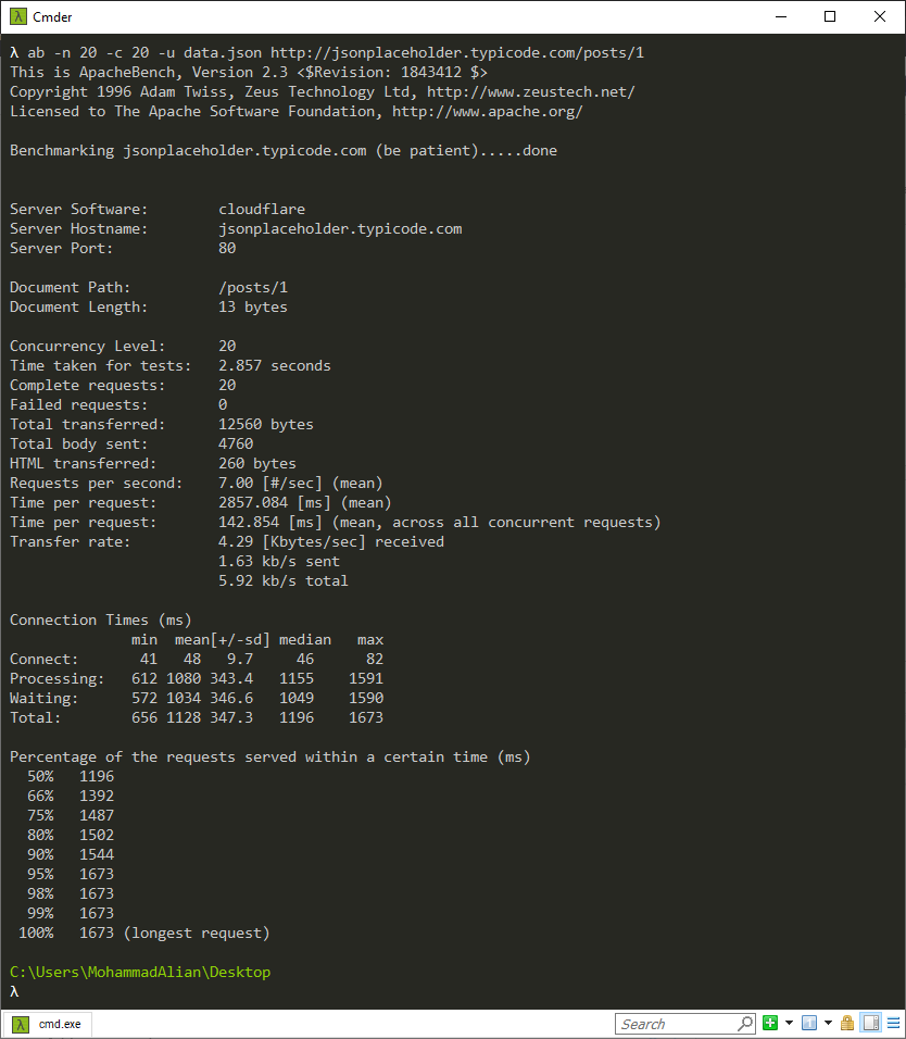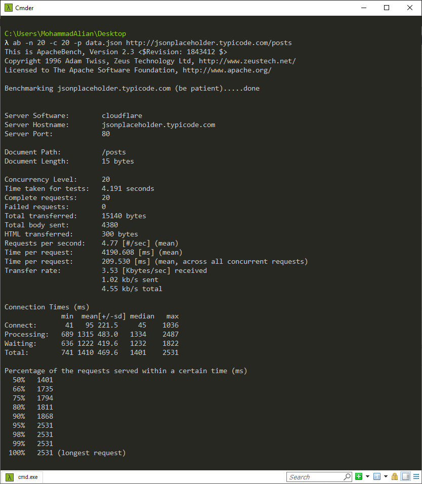 Time taken for tests: زمانی که برای انجام این تستها صرف شده