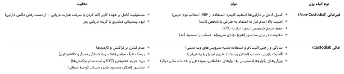 صرافیهای ارز دیجیتال (Cryptocurrency Exchanges): حساب شما در پلتفرمهایی مانند بایننس (Binance)، کوینبیس (Coinbase)، کوکوین (KuCoin) و تمامی صرافیهای داخلی، نمونهای از کیف پول حضانتی است.