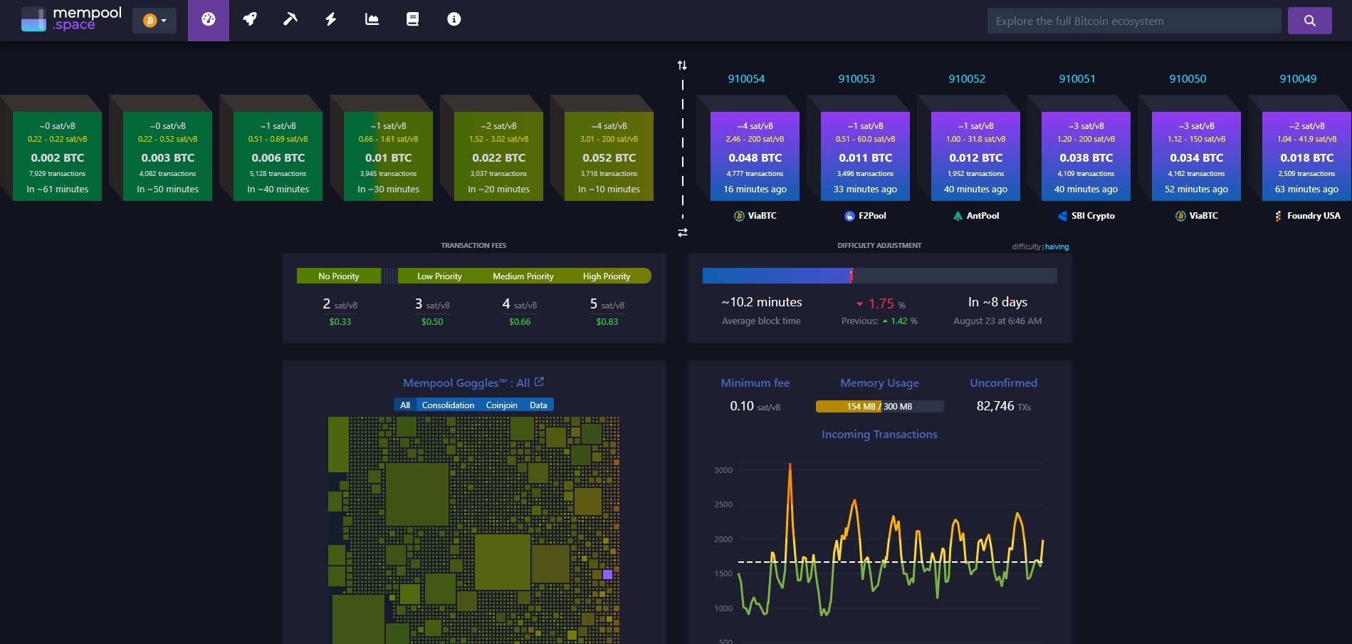 گام دوم: بررسی نقشه ترافیک: قبل از حرکت، تابلوی اعلانات زنده ایستگاه (mempool.space) را چک کنید تا از وضعیت ترافیک و قیمتهای لحظهای مطلع شوید.