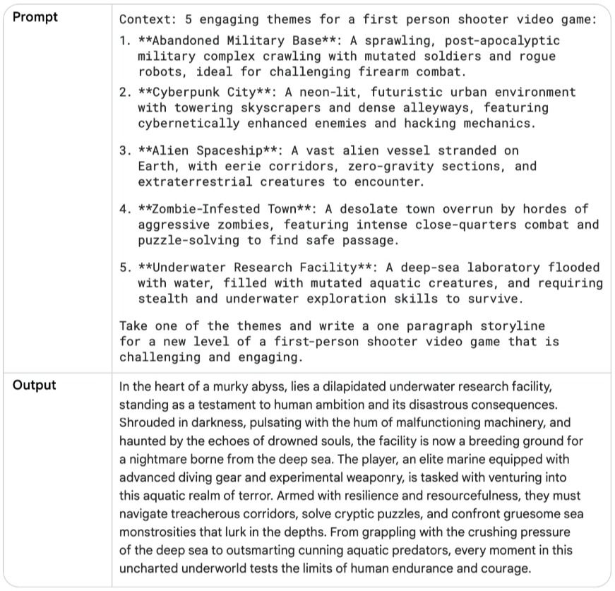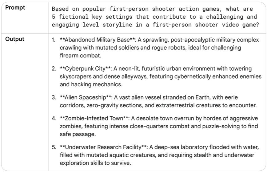 به نظر این موضوعات برای بازی ویدیویی اول شخص مناسب باشند. حالا به درخواست قبلی برگشته، ولی این بار پاسخ سوال استپبک رو بهعنوان زمینه (Context) اضافه می کنیم: