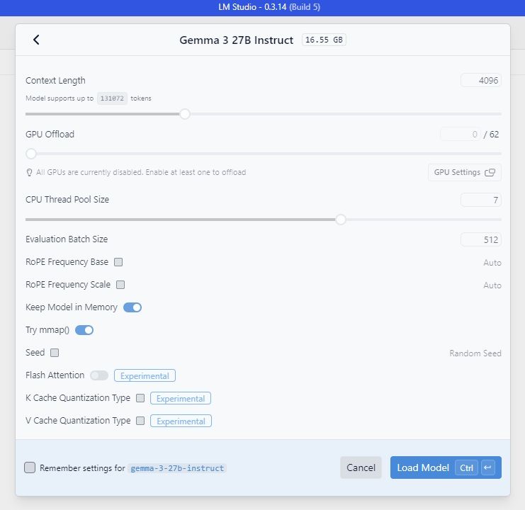 اما در اجرای شخصی مدل در روی کامپیوتر شخصی و برنامه LM Studio باید توجه داشت: