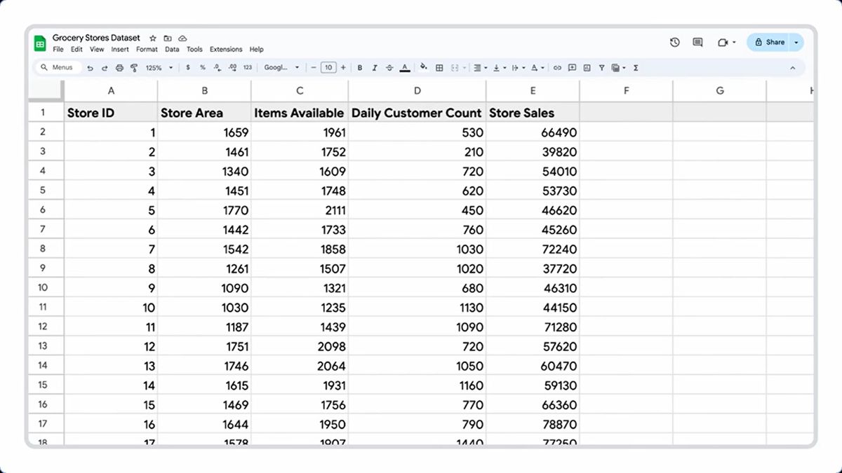 5. Attached is a Google Sheet of store data. How can I create a new column in Sheets that calculates the average sales per customer for each store?