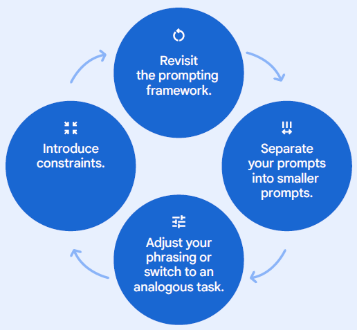 ایده اصلی در عبارت "هنگام شک، تکرار کن" (When in doubt, iterate) خلاصه میشود. اگر خروجی اولیه رضایتبخش نبود، با شفافسازی آنچه نیاز دارید، پرامپت را اصلاح کرده و تا زمانی که کاملا درست شود دوباره امتحان کنید. تکرار بخش های کلیدی مؤثر است. با تغییر پرامپت بر اساس ارزیابی، میتوانید هوش مصنوعی را به نتیجه مطلوب نزدیکتر کنید. در اینجا چهار روش تکرار آورده شده است: