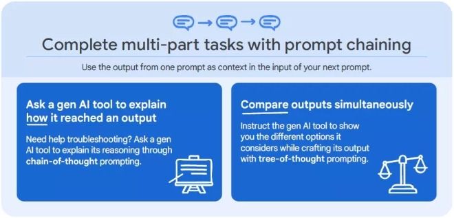 ۵-۲. تقسیم پرامپت به جملات/مراحل کوتاهتر (Separate Your Prompt into Shorter Sentences/Steps): اگر پرامپت شما پیچیده باشد، ممکن است هوش مصنوعی در پرداختن مؤثر به تمام بخشهای آن دچار مشکل شود. تقسیم آن به یک سری پرامپت های کوتاهتر و متمرکزتر یا یک دستورالعمل گام به گام اغلب میتواند نتایج بهتری به همراه داشته باشد. این گاهی اوقات به عنوان زنجیرهسازی پرامپت (prompt chaining) شناخته میشود.