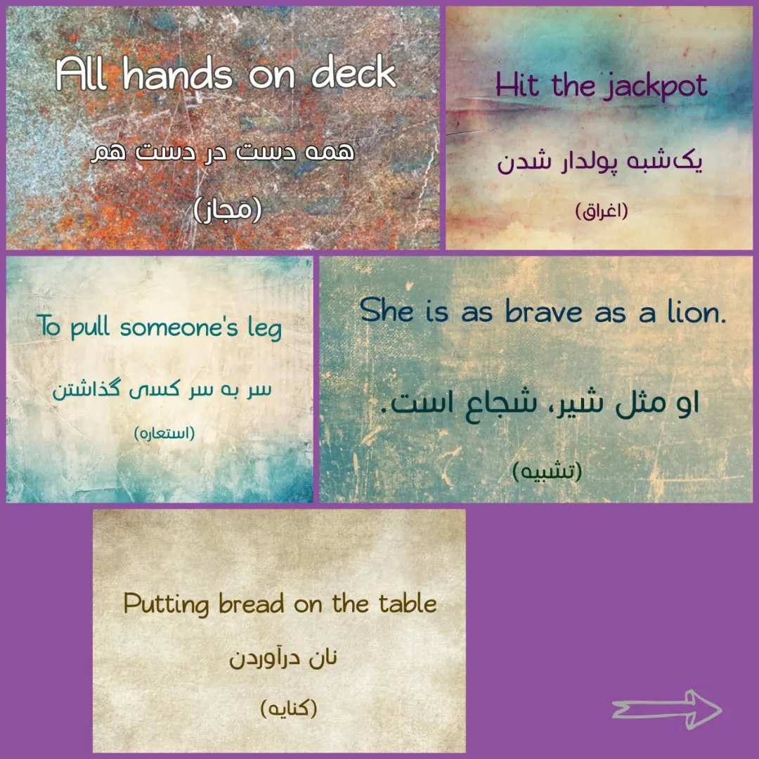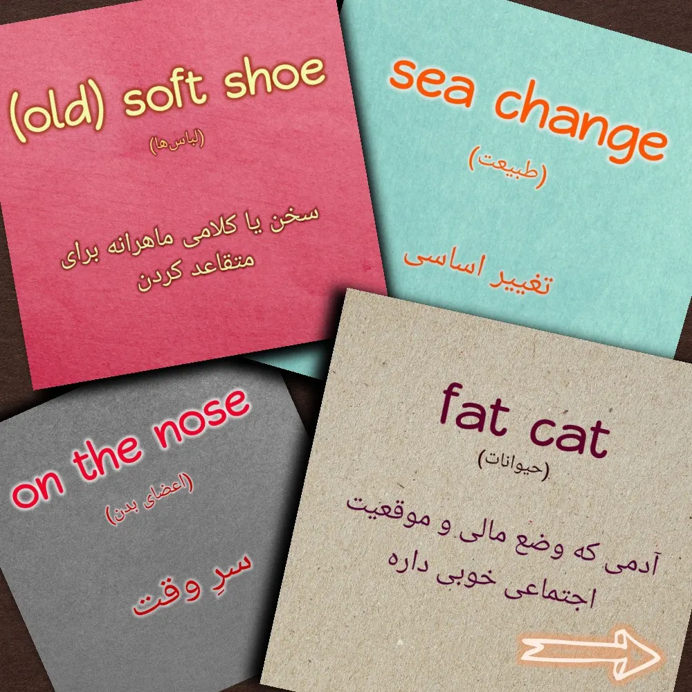در ترجمه اصطلاحات انگلیسی حتماً از فرهنگ یک زبانه کمک بگیرید، اگر formal بود، رسمی و اگر informal بود، محاورهای و غیر رسمی ترجمه کنید.