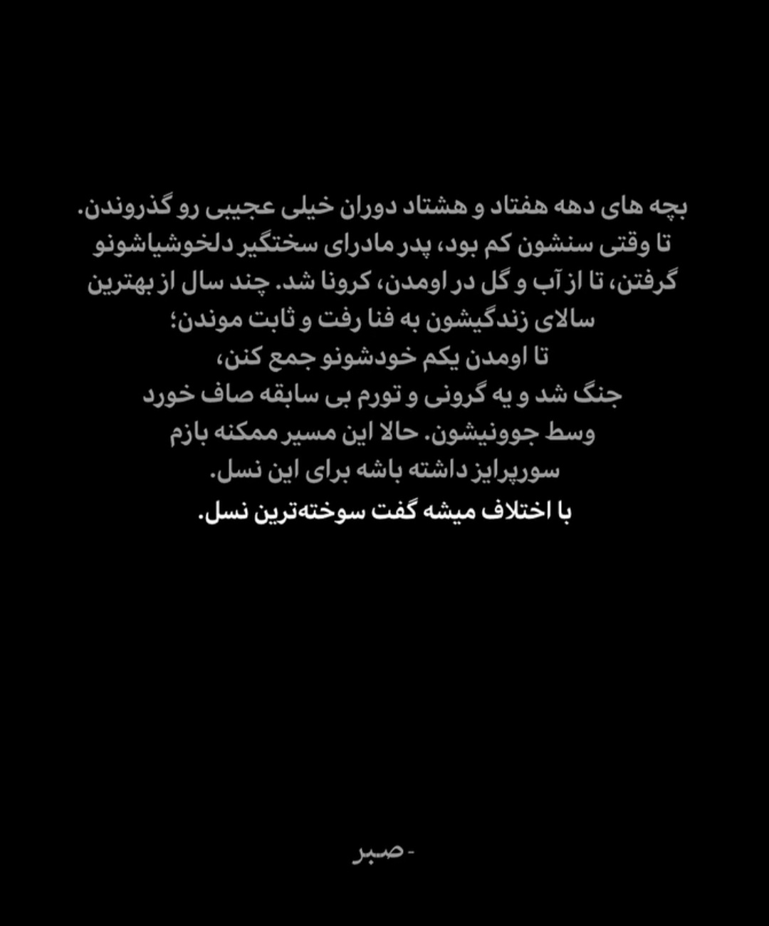 دیگه حتی اگه بخوامم ۱۴۰۴ فراموشم نمیشه. مردگیِ امسال تا همیشه تو وجودم تهنشین میشه.