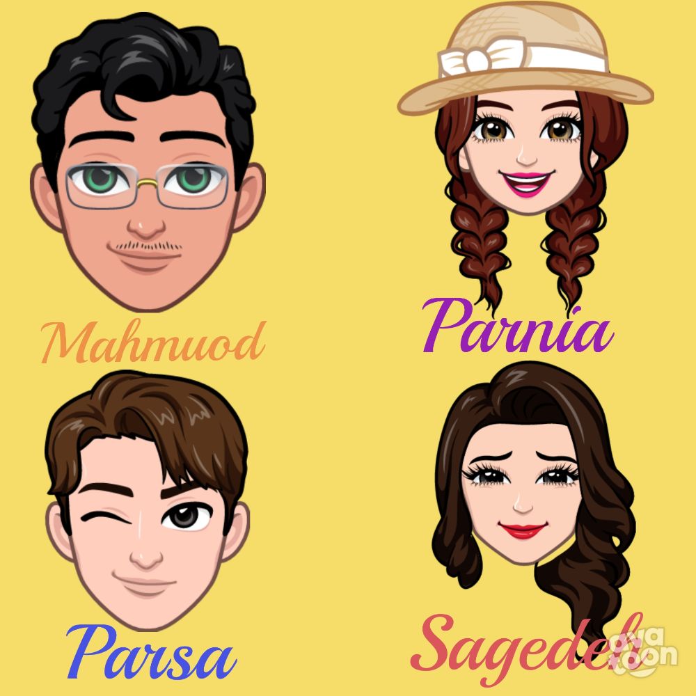 سلام راستش من خوانواده خودم رو درست کردم از اونجایی که اسم خودم پرنیا و اسم برادر کوچیک ترم پارسا است و مامان و بابام ساجده و محمود هستن این عکس شمت رو با بقیه شخصیت های عکس آشنا می کند?