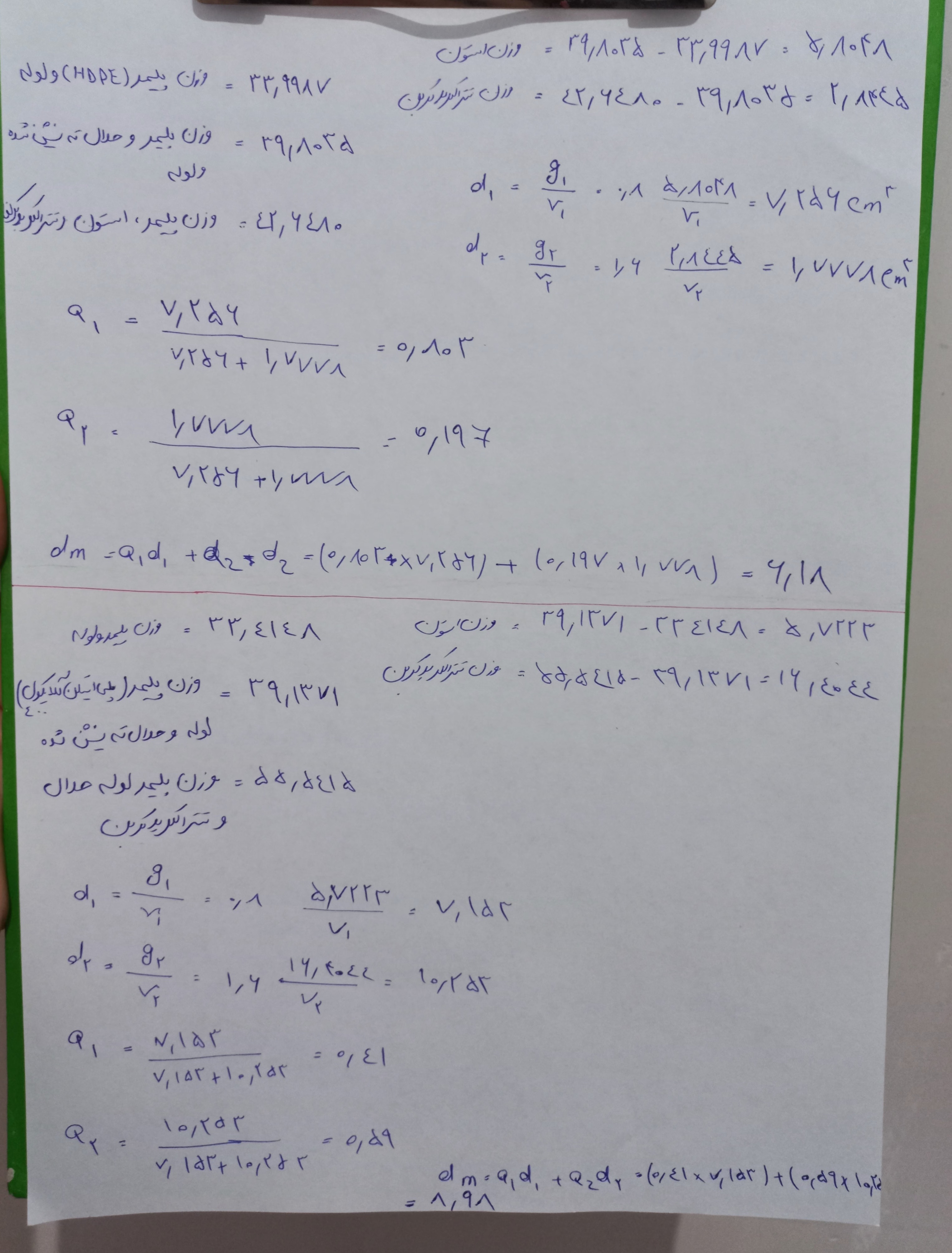 با انجام محاسبات دانستیم که چگالی به دست آمده تقریبا نزدیک به چگالی دقیق پلیمر است.